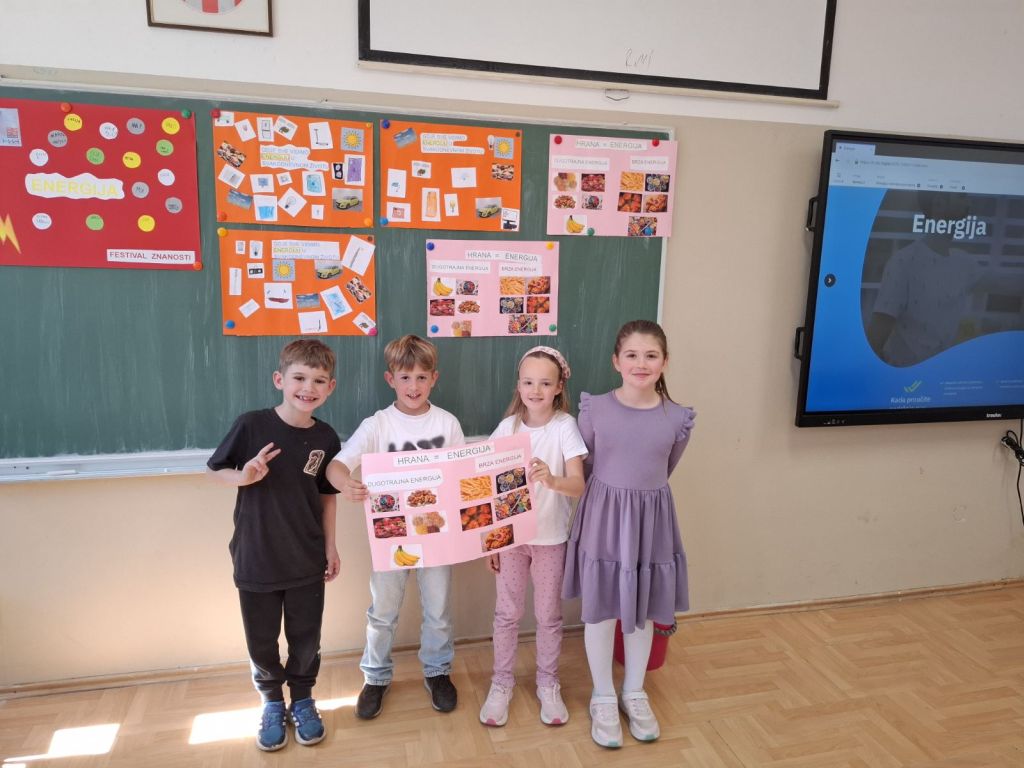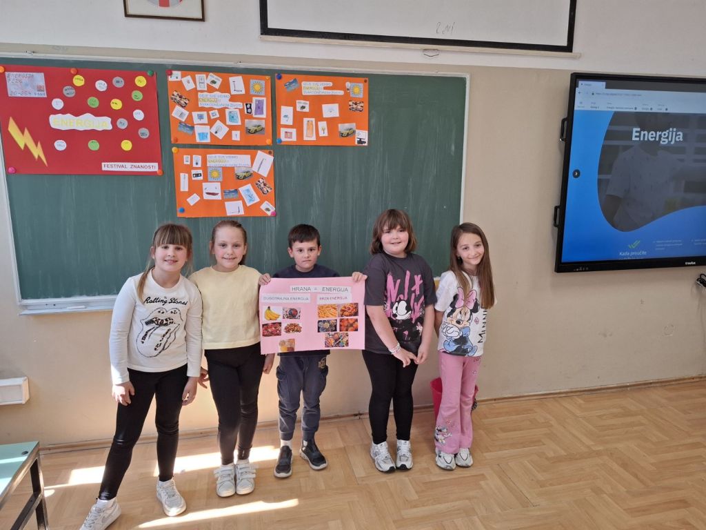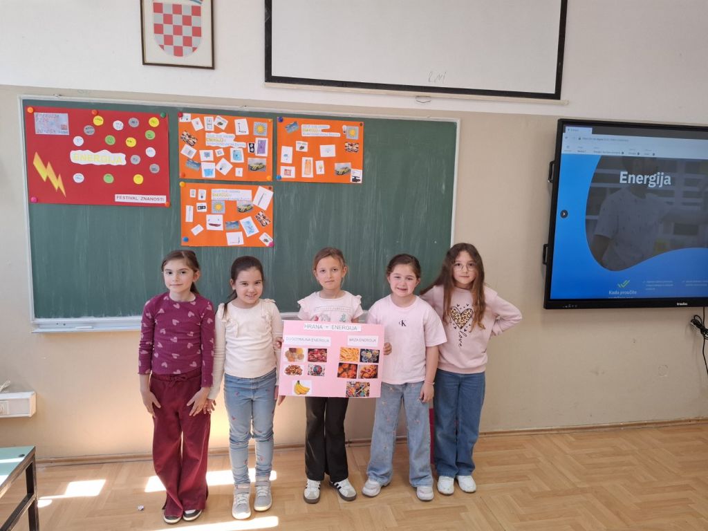 Učenici prvih razreda matične škole A. G. Matoša u Novalji su sa svojim učiteljicama Anom i Ivom obilježili Festival znanosti u projektnom tjednu na temu energija. Proučavali smo i istraživali energiju oko nas (na našem otoku) kroz pokuse te kroz igru otkrivali i stjecali nove spoznaje. Učenici su učili o obnovljivim i neobnovljivim izvorima energije te prigodno obilježili Dan planete Zemlje u prirodi.