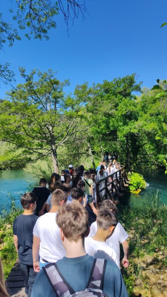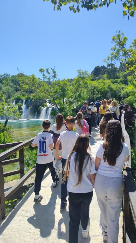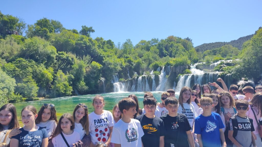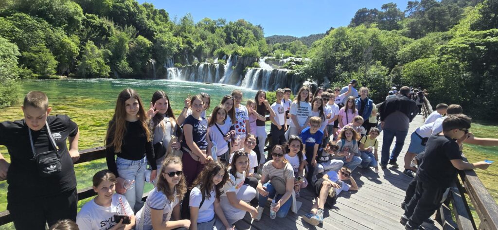Naše putovanje započelo je rano ujutro iz Novalje, a dobro raspoloženje pratilo nas je tijekom cijelog dana. U Nacionalnom parku Krka učenici su imali priliku uživo vidjeti prirodne ljepote o kojima su učili na nastavi – slapove, rijeku Krku i bogatu biljnu i životinjsku raznolikost. Šetnja kroz park bila je pravo malo istraživačko iskustvo!