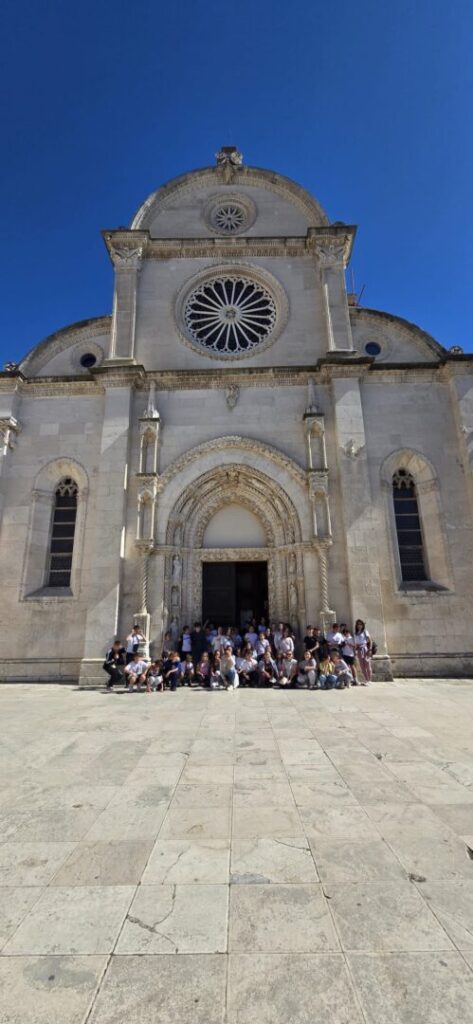 Nakon obilaska, nastavili smo put prema Šibeniku gdje je organiziran ručak u restoranu Antin gušt. Nakon ručka uslijedio je vođeni razgled grada Šibenika uz lokalnog vodiča, tijekom kojeg smo upoznali kulturno-povijesne znamenitosti grada, među kojima je Katedrala svetog Jakova (uvrštena na UNESCO-ov popis svjetske kulturne baštine), krstionica koja je remek djelo Jurja Dalmatinca, te palača Divnić. Učenici su imali i malo slobodnog vremena koje su iskoristili za kupnju suvenira.