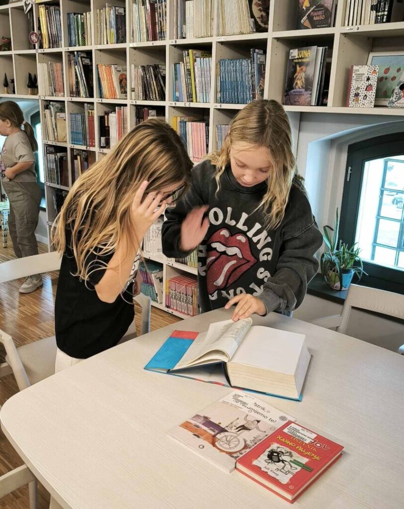 U drugoj radionici smo upoznali prostor dječje knjižnice tražeći prema zadanim uputama knjižničarke različite vrste knjiga. Pronađi knjigu s crvenom naslovnicom. Pronađi knjigu koja ima više od petsto stranica. Gdje se nalazi strip? Koja knjiga ima u naslovu ime neke životinje? Baš i nije bilo lako snalaziti se po ogromnoj knjižnici, tražiti knjige i rješavati zagonetke! Još smo se i poigrali u predvorju Dječje kuće sa starim igračkama prije mobitela. Hula hop nas je sve očarao!