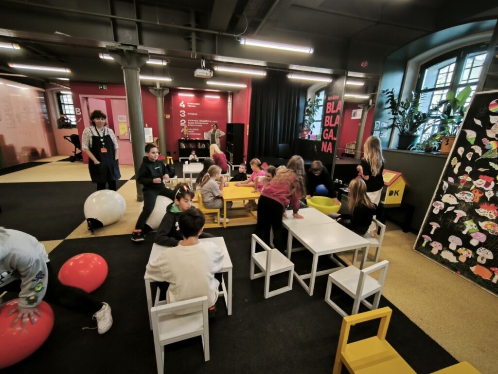 Učenici su sudjelovali u dvije radionice. Jedna je bila u prostoru „Šume Striborove“. U toj mekoj šumi od tepiha, neobuveni smo naučili multisenzorno dočarati različite nepoznate pojmove i likove iz lektire. Koristili smo se pokretom, plesom, zvukom, glasom, pjevanjem, dodirom, pantomimom…